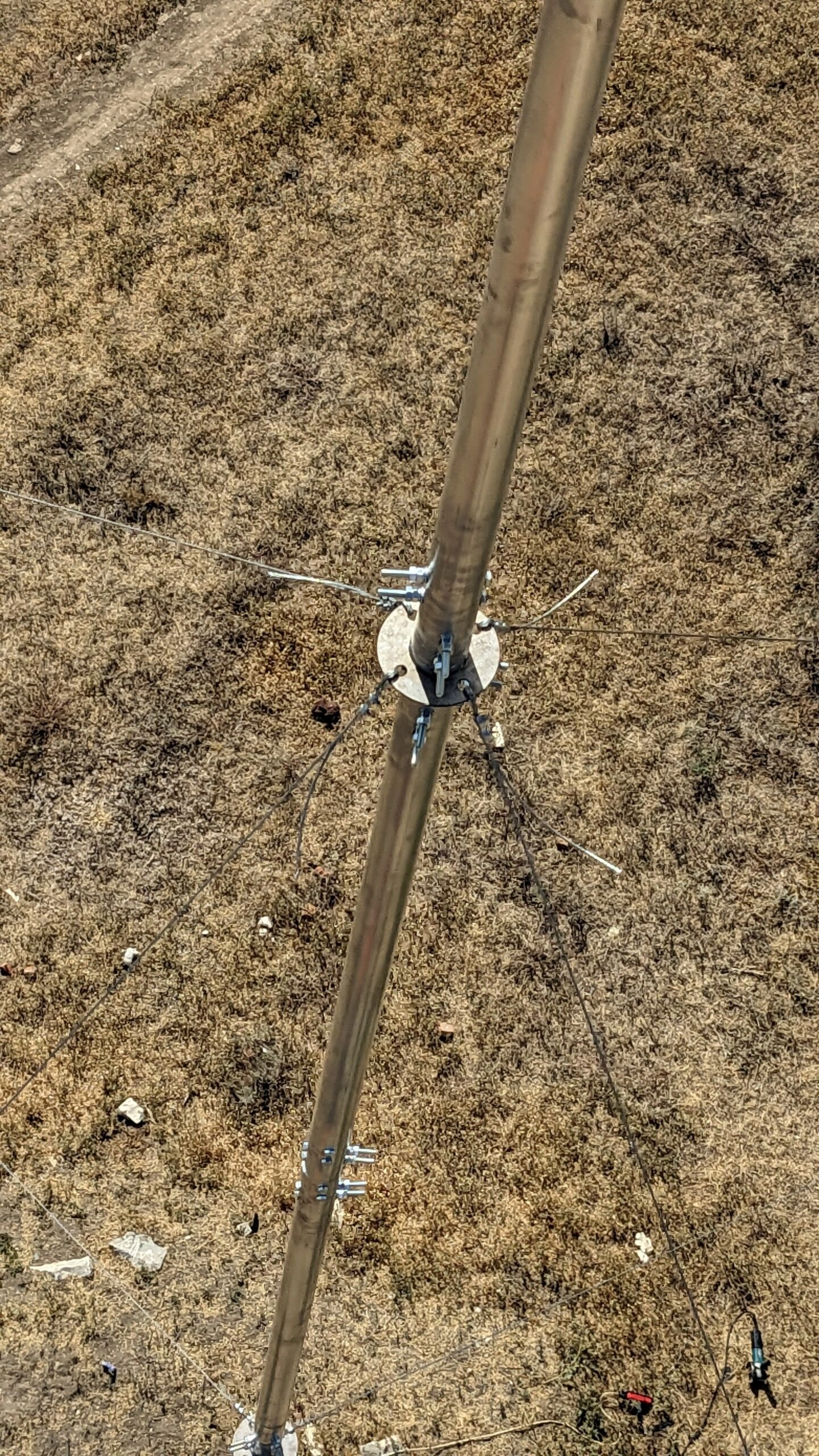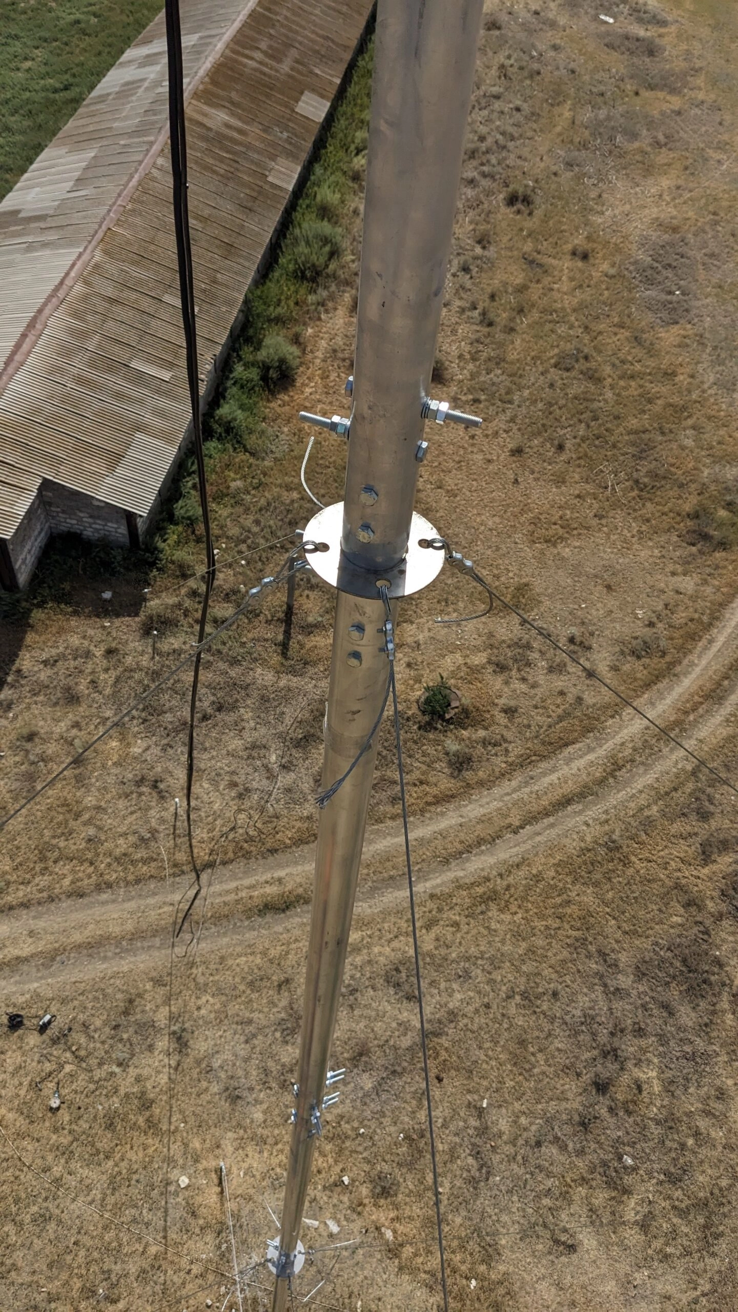 Устойчивость мачты для антенн в вертикальном положении обеспечивается системой оттяжек (в комплект не входят), которые крепятся к мачте через кольцо под растяжки с одной стороны, а с другой стороны прикрепляются к элементам специального крепежа (крюкам, петлям), вмонтированных в кровлю, стены, землю и т.п.